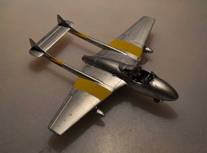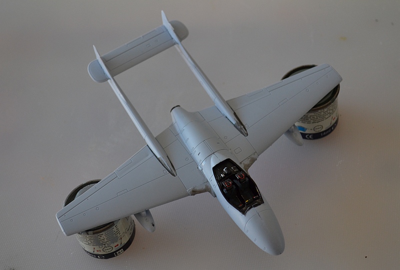 Finally, I added some simple wire ejector seat handles to my seats and a plastic strip radio aerial on the port upper boom, but otherwise the kit is built out the box. Nose weight is essential for these twin boom kits and the construction sequence allows you to add it at a late stage through the belly gun-pack fairing.