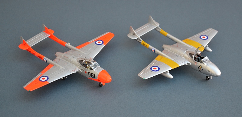 The arrival of the new Vampire T.11 kit in the 2013 Airfix catalogue was a very pleasant surprise and the kit itself certainly lives up to modern expectations, with excellent detail and well planned construction sequence. Fit is good, although there are a couple of minor tricky areas and surface detail is engraved a little too deeply. Decals for two RAF aircraft are well chosen and nicely printed on a comprehensive sheet, although the strong colour demarcations of the suggested dayglo scheme in particular will need the modeller to think carefully about decal translucency where the roundels cross colour. Nevertheless, at the price Airfix are asking, this has to be one of the best bargains of the year and one of the most enjoyable Airfix kits I have built in a long time.