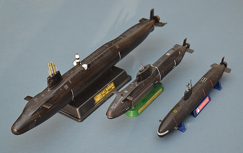 Completing my set of current Royal Navy submarines, this is Bronco's Vanguard class SSBN. The coparative size of this kit when sat alongside my ASTUTE and TRAFALGAR class kits is illuminating; in real life, these are BIG boats