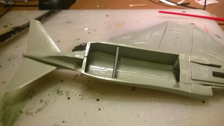 That said, it builds fairly well, although not as precisely as I have come to expect from Hasegawa kits, even old ones. The fit of the wings to the fuselage was disappointing, with gaps all round, especially between wing and upper fuselage sides. This was addressed by inserting a spreader bar from sprue cut to the correct size.