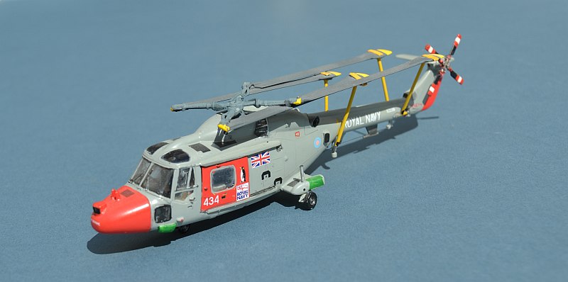 This is the 1/72 Airfix Lynx kit, with a few scratch modifications. I built this back in 2008 using some rather oversize handling bars to keep the folded blades in place. This update substitutes some polystyrene rod of amore realistic diameter. Link to original build
