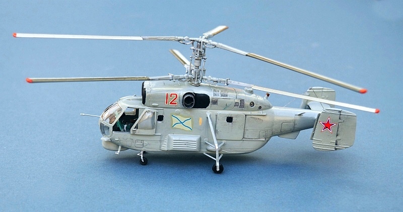 Nevertheless, it assembles easily with the sole exception of the very complex rotor head assembly (mine still turns, but not very smoothly!). I reduced the size of the rivets on the tail assembly (my reference pictures don’t show them as particularly prominent) and added detail to the instrument panel and seats.