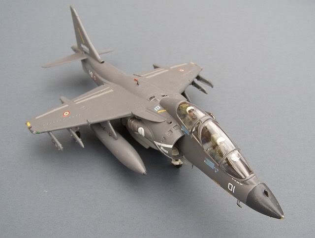 Italeri issued a revised version of their Harrier II prototype kit as a GR.7, with some nice (although not entirely accurate) decals and weapons. Unfortunately these do not include the Paveway laser guided bombs worn by this model, which come from a separate Italeri weapons set.