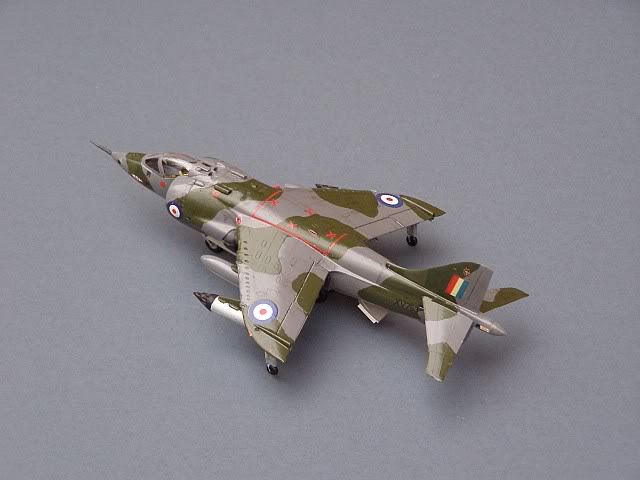 Fujimi's Harrier kits are reasonably accurate, but not easy builds. This one represents an aircraft of 1417 Flt, RAF Belize in the mid 1980s. Whilst I was serving in HMS LIVERPOOL, during our 1987 "West Indies Guardship" deployment (its a dirty job, but someone has to do it!), we exercised with 1417 Flt off the coast of Belize, providing our splash target for them to practice attacking fast moving sea-borne targets with Aden Guns and Rockets. Our activities attracted much interest from heavily armed (and not altogether friendly) Honduran and Guatemalan gunboats, which added a little spice to the proceedings.