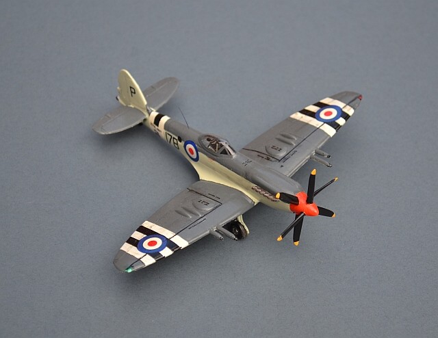 Converted Academy Spitfire XIV with Freightdog Models markings. Engine cowling shortened, hook/wheel guard added, 4 blade prop.