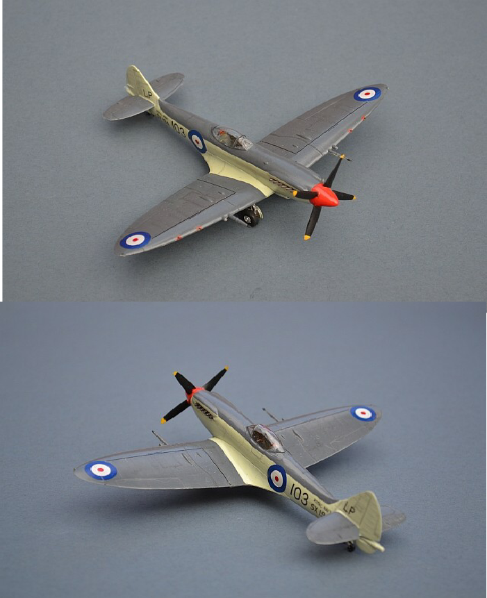 Heller Spitfire XVI with built up after deck, Academy canopy, wing extensions, single radiator and more (built using the spare bits left over from the Seafire 17 below).