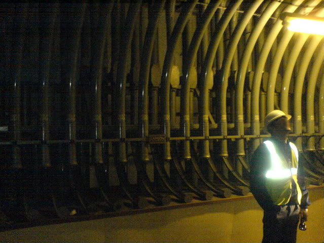 I nearly fell off the truck taking this one - with my torch in one hand and the mobile phone/camera in the other. The underground site is huge, so electric trucks are required; in 2.5 hours we ONLY did the formerly secret Cold War Govt HQ - there is substantially more than this to see in the WW2 areas.